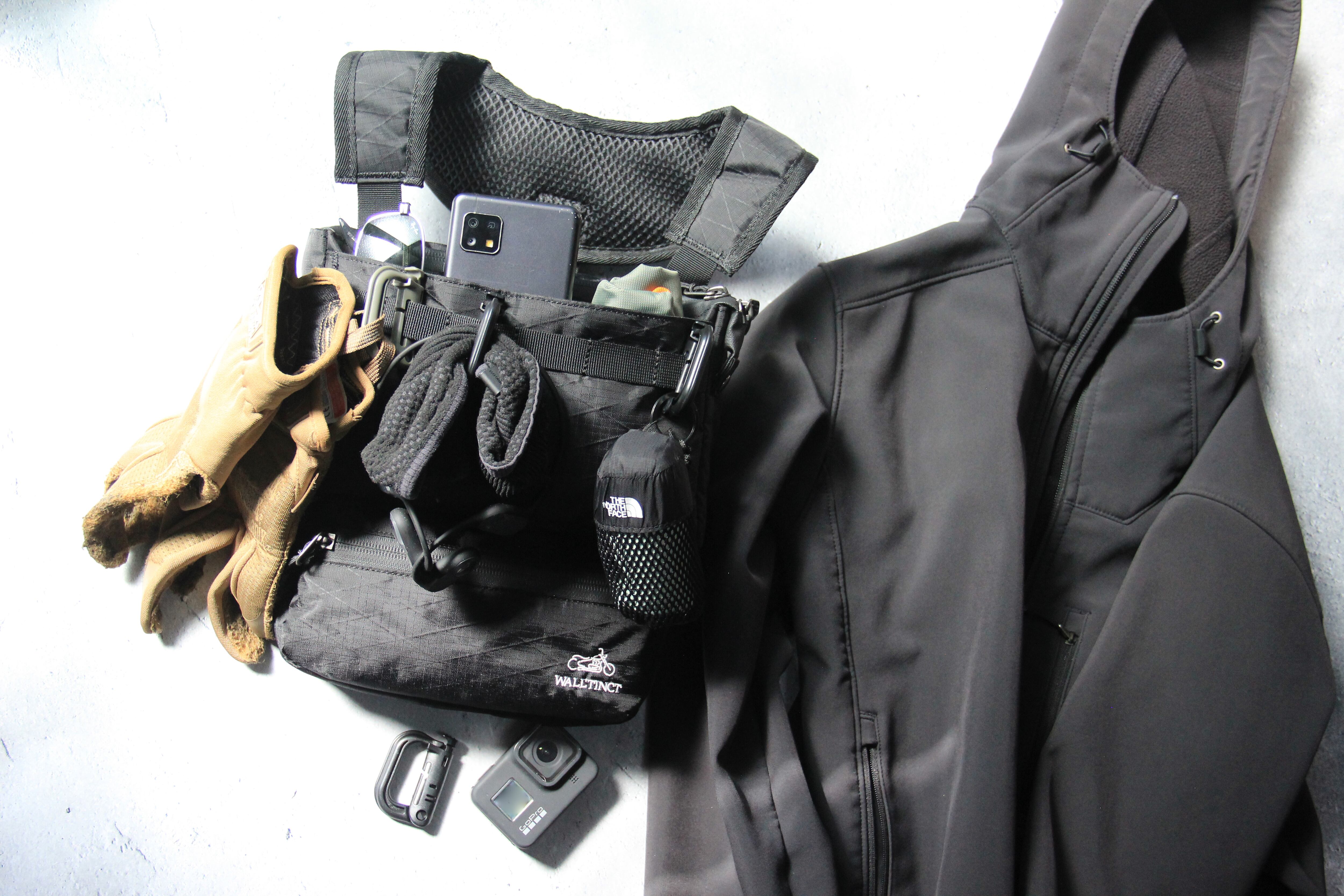 カラビナ等のアイテムを使用することで、様々な物を持ち運ぶことが可能になり、スマホやアクションカメラで胸の前からの映像を簡単に撮影することができ、より楽しいバイクライフを過ごせます。 PROTECT RIGは、今までになかった鞄一体型の胸部プロテクターとして、安全だけではなく機能性も追求した商品です。 ・サイズ:free ・カラー:black ・素材:防水シート、止水ジップ使用